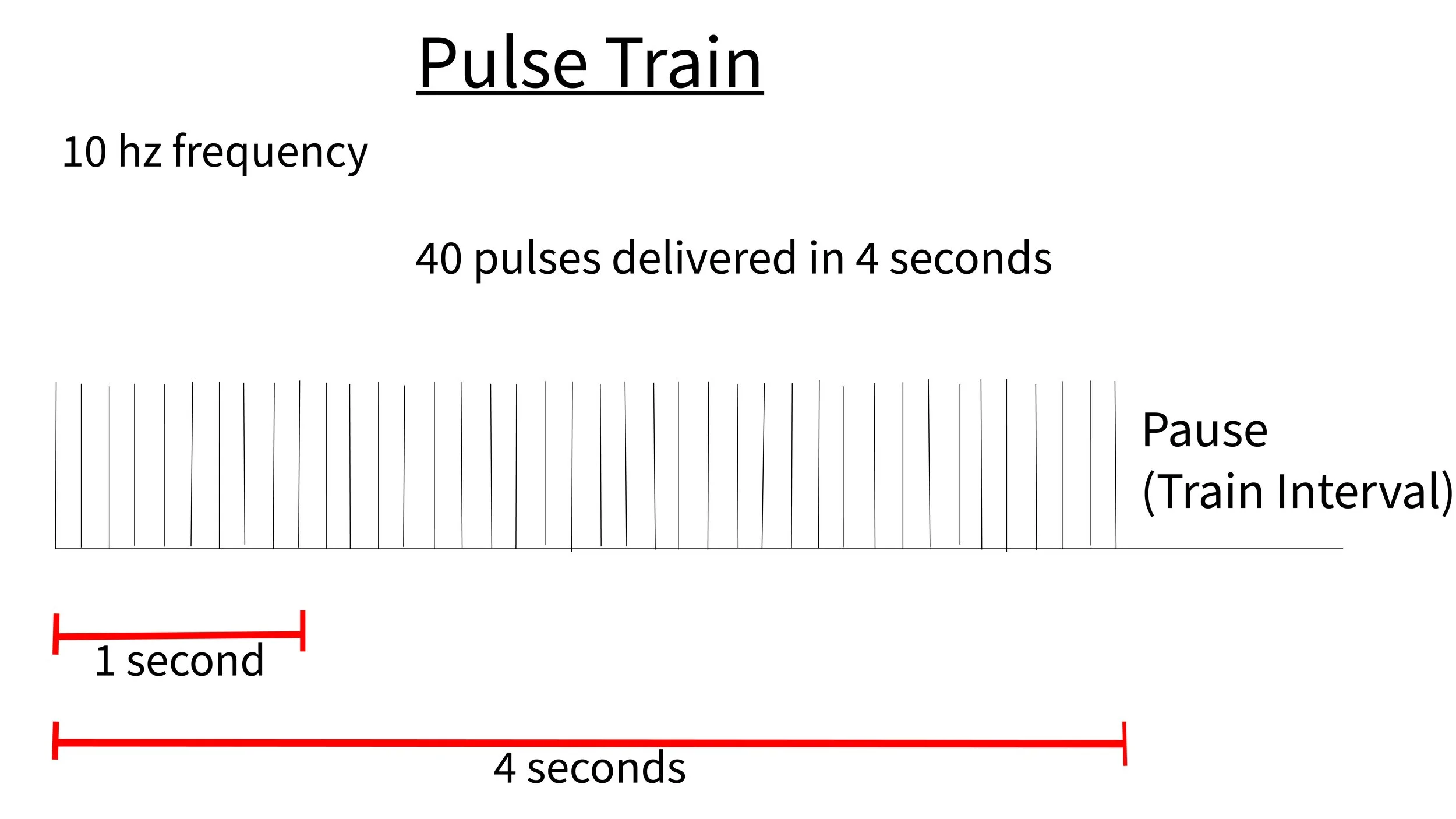 A typical treatment with high frequency left sided DLPC targeting will have 3000 pulses per session. This will typically involve 10 pulses per second (10 hz) at 100-120% MT (strength of magnetic field) with a pulse train lasting 4 seconds. A treatment session usually consists of 75 trains spaced approximately 10-50 seconds apart. This means the treatment will take approximately 17-54 minutes depending upon the machine settings.